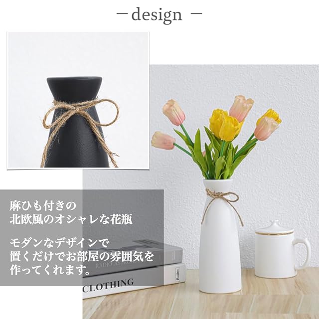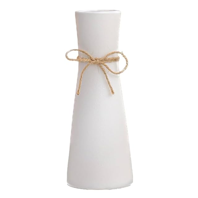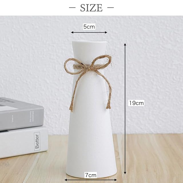 +kuRo 花瓶 フラワーベース 陶器 北欧 おしゃれ 大きい インテリア 花器 生花 ドライフラワー セラミックス (19cm, ホワイト)