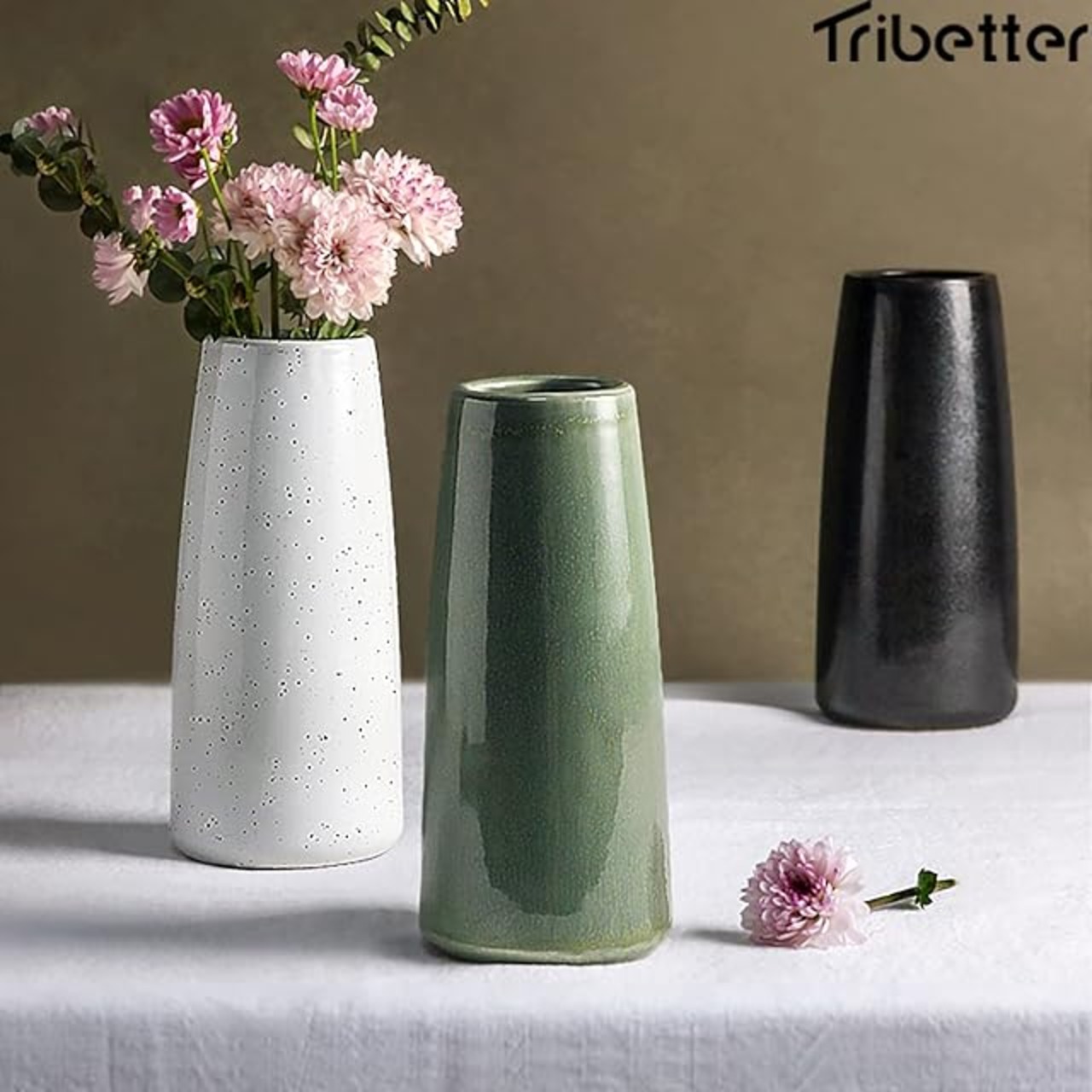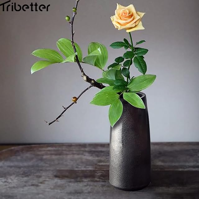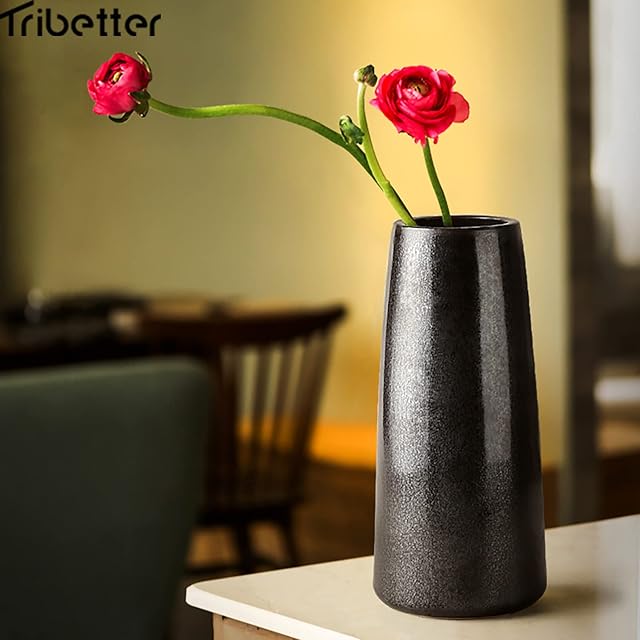 Tribetter花瓶 手作り 高温磁器 高さ約18.5cmフラワーベース シンプル 花器 セラミック おしゃれ 北欧 陶器 生花 インテリア 家の装飾 ギフト(ブラック)