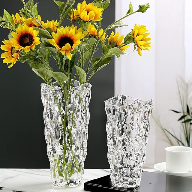ガラス フラワーベース 透明 花瓶 ガラス おしゃれ 大 花瓶 北欧 花瓶 30cm グラデーション 現代 シンプル 透明 広口 花器 部屋 玄関 リビング インテリア プレゼント (シャンペン色-30cm)