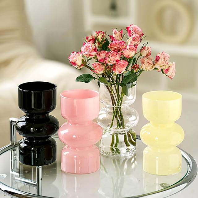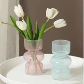 GULAYI花瓶 一輪挿しガラスフラワーベース 花器 ガラス花瓶 おしゃれ 北欧 透明 ガラスベース ガラスボトル アレンジ インテリア雑貨 インテリア飾り (ピンク-19cm)