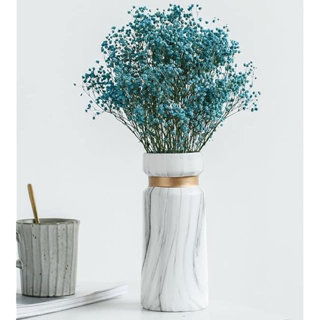 AIVAR 花瓶 陶器 白 花器 かびん フラワーベース セラミック ホワイト おしゃれ 大理石紋様 大 20cm 北欧 スタイル ins インテリア飾り 結婚式 飾り ギフト (ホワイト-B)
