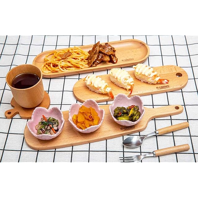 商品名:K-UNING木製取っ手付きトレー 巻すし皿 寿司プレート ピクニック アウトドア 軽量 盛りつけ台 キッチン用細長 トレー