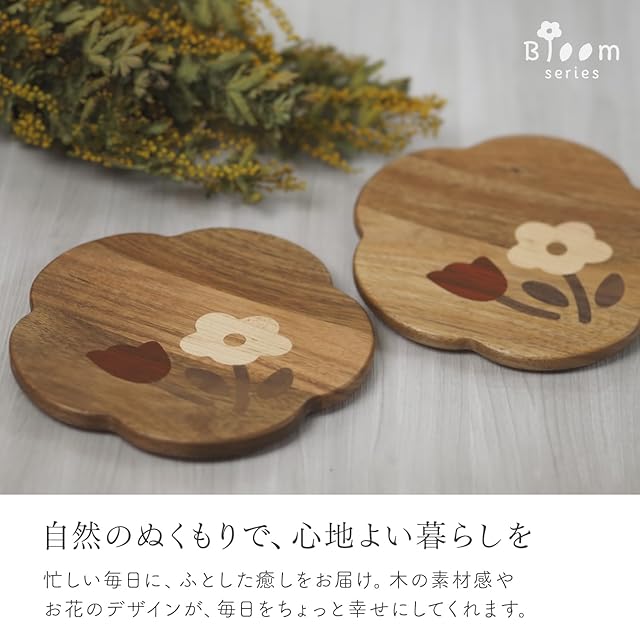 Mirx 木製プレート アカシアラウンドプレート ウッド アカシア 木製食器 手造り 天然木 花柄 フラワー おしゃれ プレゼント かわいい食器 ケーキ皿