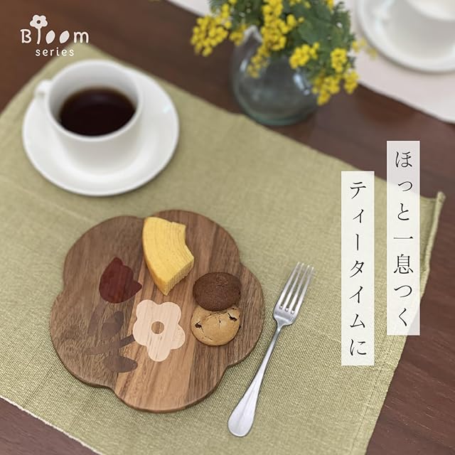 【華やかに彩る花の天然木プレート】Mirx Bloomシリーズの上品な花形プレート。4種の天然木が織りなす美しいコントラストが、食卓を華やかに演出します。お菓子やフルーツを添えて、特別なおもてなしに。
