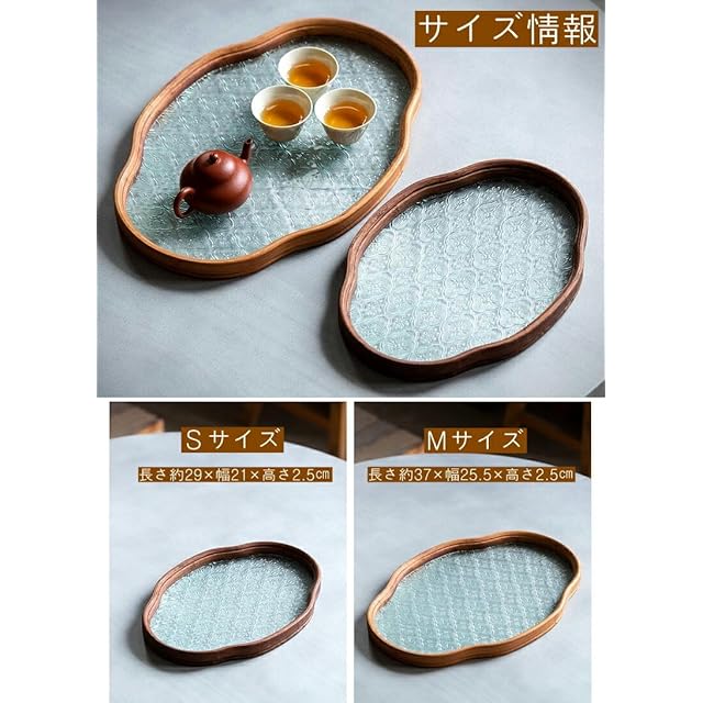 商品名:IwaiLoft「シノワズリ・レトロ」フローラガラス トレー トレイ 盛器 雲型 楕円 花柄 29cm 35cm 透明 お皿 ガラス プレート 木 カフェトレイ ティートレー カフェプレート おしゃれ 花海棠柄 木枠オリエンタル盆 (雲型, 長さ29cm x 幅20.5cm x 高さ2.5cm)