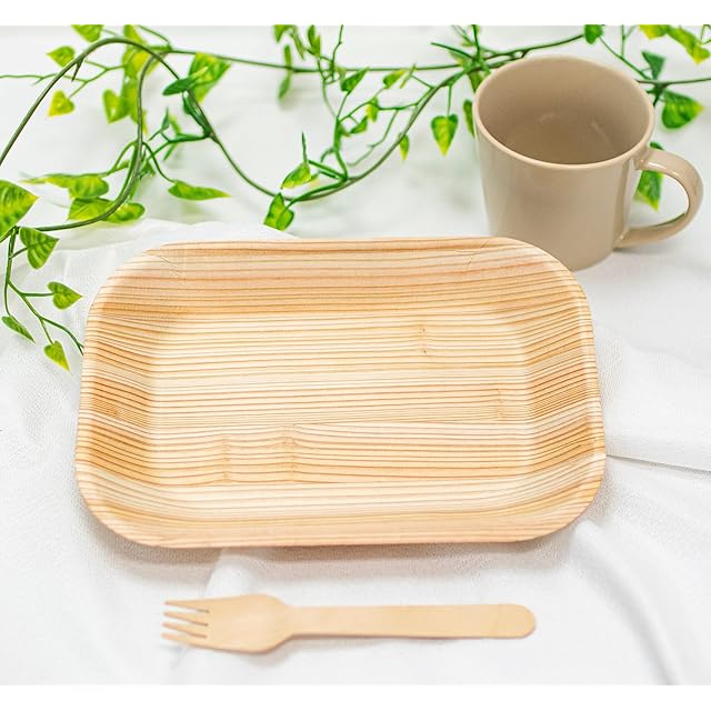 トライ・ウッド エコウッドプレート (10枚入り / 角型 / 16.5×23.5cm) 日本製 国産杉使用 (木でできた紙皿のように使えるお皿/あと片付け楽チン) 木製 皿