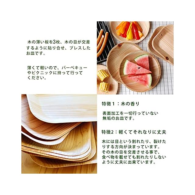 商品名:KIZARA 紙皿の様な木皿 (#2 丸皿 8枚 ラウンド) 使い捨ての皿 経木の皿