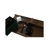 【可動式ハンドルがスタンドに】パネル背面の可動式ハンドルがスタンドに。キャンプ場の洗い場、キッチンテーブルの上、停電時、足元が不安なときに。