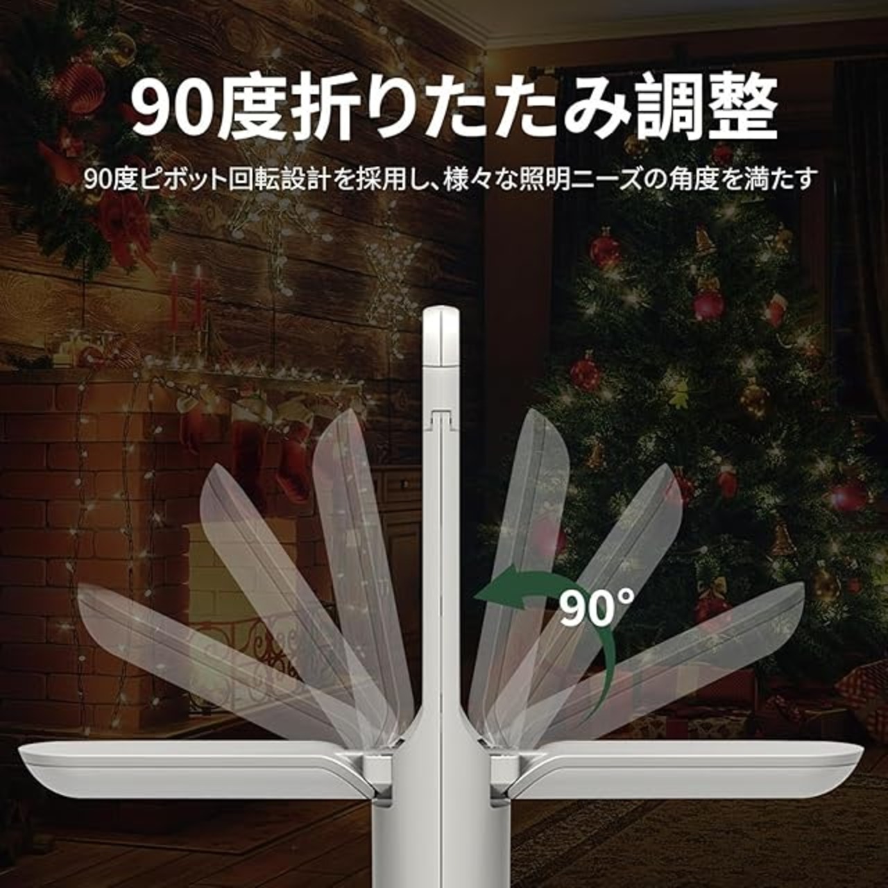 【90度の角度調整が可能】 ランプポストは最大90度まで自由に角度を調整できるため、照らしたい方向に合わせて柔軟に対応できます。折りたたみ式のブレードデザインにより、照明範囲を自在に調節可能。さらに、回転構造はしっかりと固定される設計となっており、使用中にぐらつく心配がありません。中央部にはマグネットを内蔵しており、長時間使用しても灯具が落下しにくく、安心してご利用いただけます。