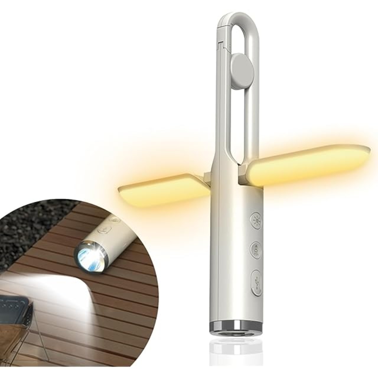 【持ち運びやすさと大容量バッテリー】 直径23.7×3.8cmのコンパクトで軽量なデザインにより、フックを使って簡単に持ち運べます。2000mAhの大容量バッテリーを搭載し、Type-C急速充電にも対応。約2時間の充電で最大10時間の連続使用が可能です(充電しながらの使用も対応)。キャンプや旅行はもちろん、停電時の備えにも安心な性能を備えています。