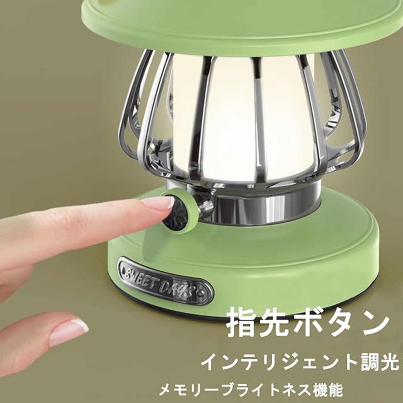 商品名:ランタン LEDランタン USB充電式キャンプ ライト 無段階調光 3色切り替え 暖色 昼白色 自然色 光色輝度記憶 キャンプ ライト 吊り下げ 明るい 軽量 アウトドア キャンプ 野営 夜釣り 夜間散歩 車中泊 防災 停電 常夜灯 テントライト (グリーン)