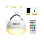 【13色リモコン操作 & 無段階調光】 リモコンでワンタッチ色切替!昼白色・電球色・自然光に加え、オレンジ/赤/緑/青/紫など全13色から選択可能。長押しで明るさを無段階調節でき、キャンプのムード照明から停電時の非常灯まで幅広く対応。SOSモードも内蔵し、防災時にも安心です。