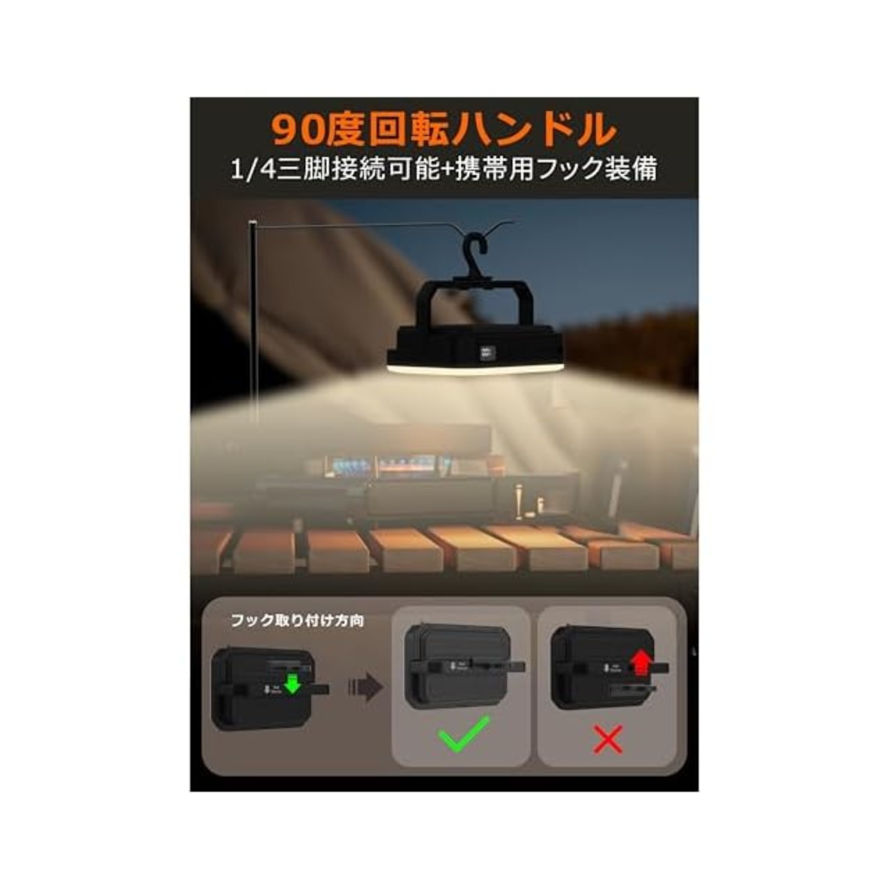 商品名:【24,000mAh大容量】1800lm 防災グッズ LEDランタン キャンプライト 22.5W高速充電対応 4色調光/SOS IP65防水 電気量輝度数字表示 三脚取付可 明るさ記憶機能 BLACK