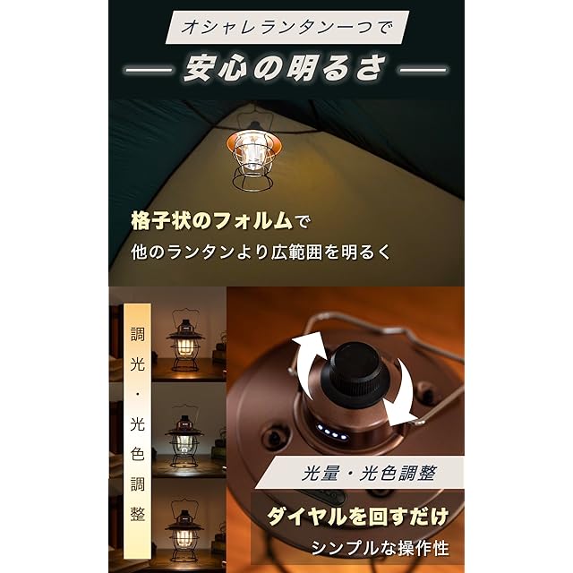 商品名:ランタン LED 【実用性×高いデザイン性】充電式 オシャレ レトロ キャンプ アンティーク風 明るい 広角 防災 防水 キャンプ 釣り 非常用 停電 日本ブランド Cercano (セルカノ)