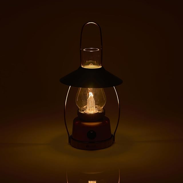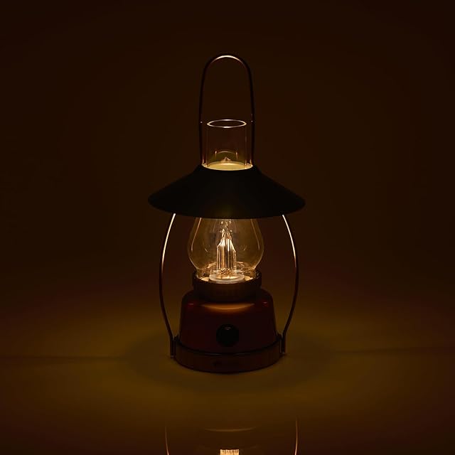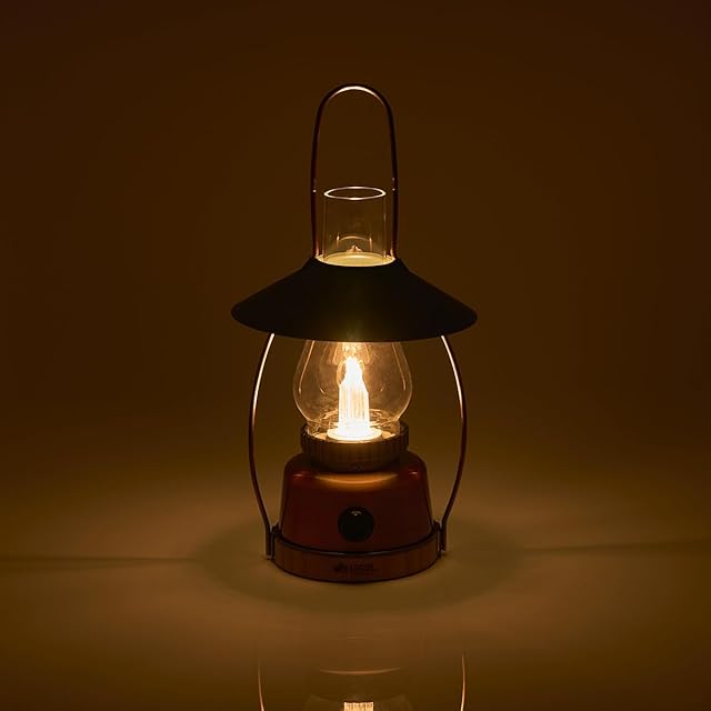 【竹素材を使用したクラシカルなガス灯風ボディ】ボディの一部には竹集成材、ホヤにはガラスを使用!クラシカルなガス灯風ランタンは、アウトドアシーンに溶け込みます。また、お家でもインテリアの一部としてお使いいただけ、幅広く活躍します。周囲を照らしたい時は傘を外して、卓上を照らしたいときは傘を付けると下方向へ光が広がります。クールで印象的なワイヤーフレームは、取っ手や吊り下げにも利用できます。LEDなのでヤケドや引火の危険がなく安全で「長寿命」「静か」な環境にやさしいランタンです。