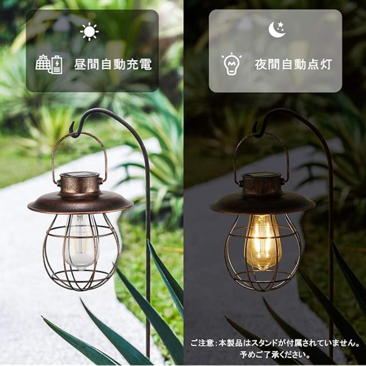 【アンティーク風設計・便利】昔懐かしい姿形でアンティーク調がそのまま醸し出せます。古材を使用した空間にぴったり。北欧インテリアやナチュラルテイストのインテリアにも似合います。ぶら下げて使うこともできるので、使いたい場所に吊り下げて便利。(ご注意:明暗センサー付きなので、日中や明るい場所でソーラーパネルが上向きになると、スイッチを「ON」にしても点灯しません。この場合、ソーラーパネルを下にしたり、手で覆ったりして再度「ON」にしてみてください。)