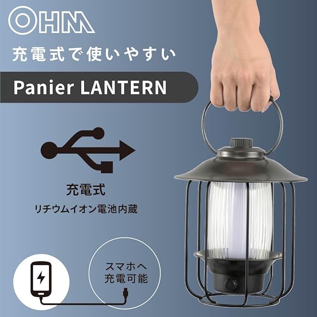 商品名:オーム電機 ランタン LED 充電式 調光調色 スマホに充電できる ガラス製 おしゃれ Panier パニエ LN-C40A7 08-0933 OHM
