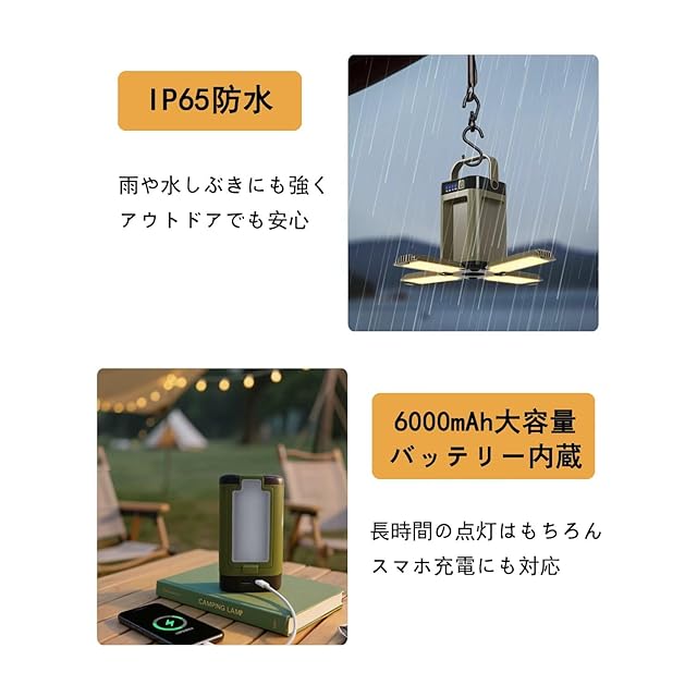 商品名:LED ランタン ソーラー 充電式 キャンプ 業界初 6000mAh オレンジ色ライト搭載 白色 電球色 折りたたみ式 超高輝度 USB充電 6モード切替 キャンプ 防災 夜釣り 車中泊 停電対策 懐中電灯 キャンプライト
