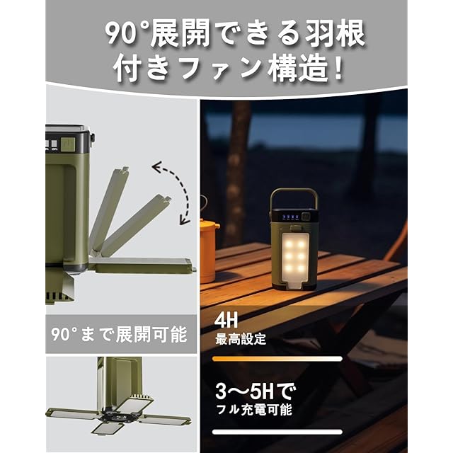 【90°展開できる羽根付きファン構造で広範囲照射】ライト部分は90°まで展開可能な羽根付きファン構造で、吊り下げても安定。必要な場所をしっかりと照らし、広い範囲を均一に照明します。