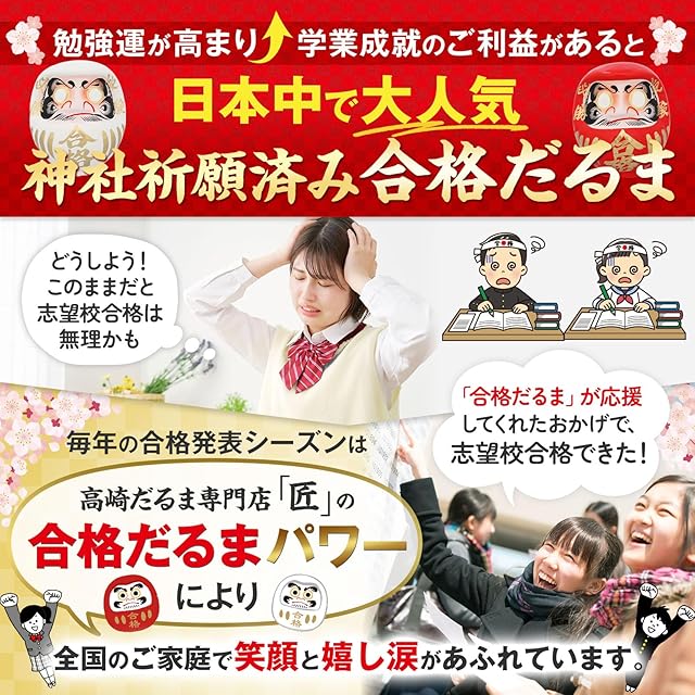 商品名:【神社祈願済み】 合格 高崎だるま 受験必勝 3号 高さ約15㎝ 合格祈願 学業成就 大願成就 受験 応援 鉛筆 置物 グッズ オブジェ お守り 高崎ダルマ だるま ダルマ 達磨 AD019 受験必勝 (赤)