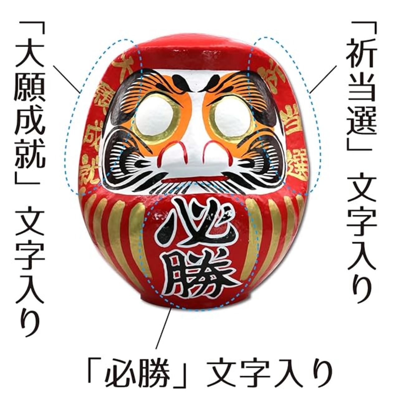 本体には黒で「必勝」、脇には金で「祈当選」「大願成就」の文字入り。