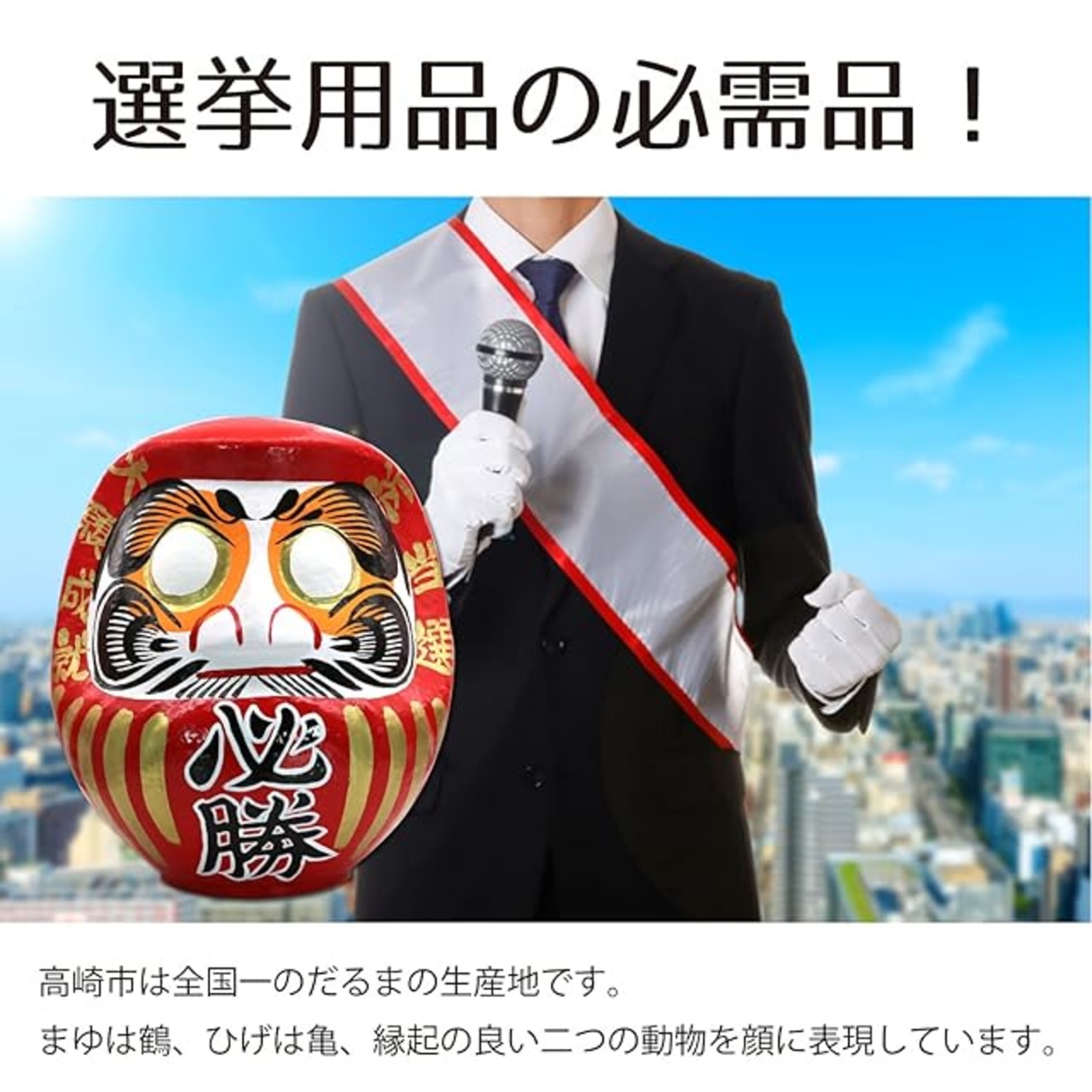 商品名:必勝 だるま 選挙用 高さ約43cm 金脇文字入り 祈当選 大願成就 高崎だるま 日本製