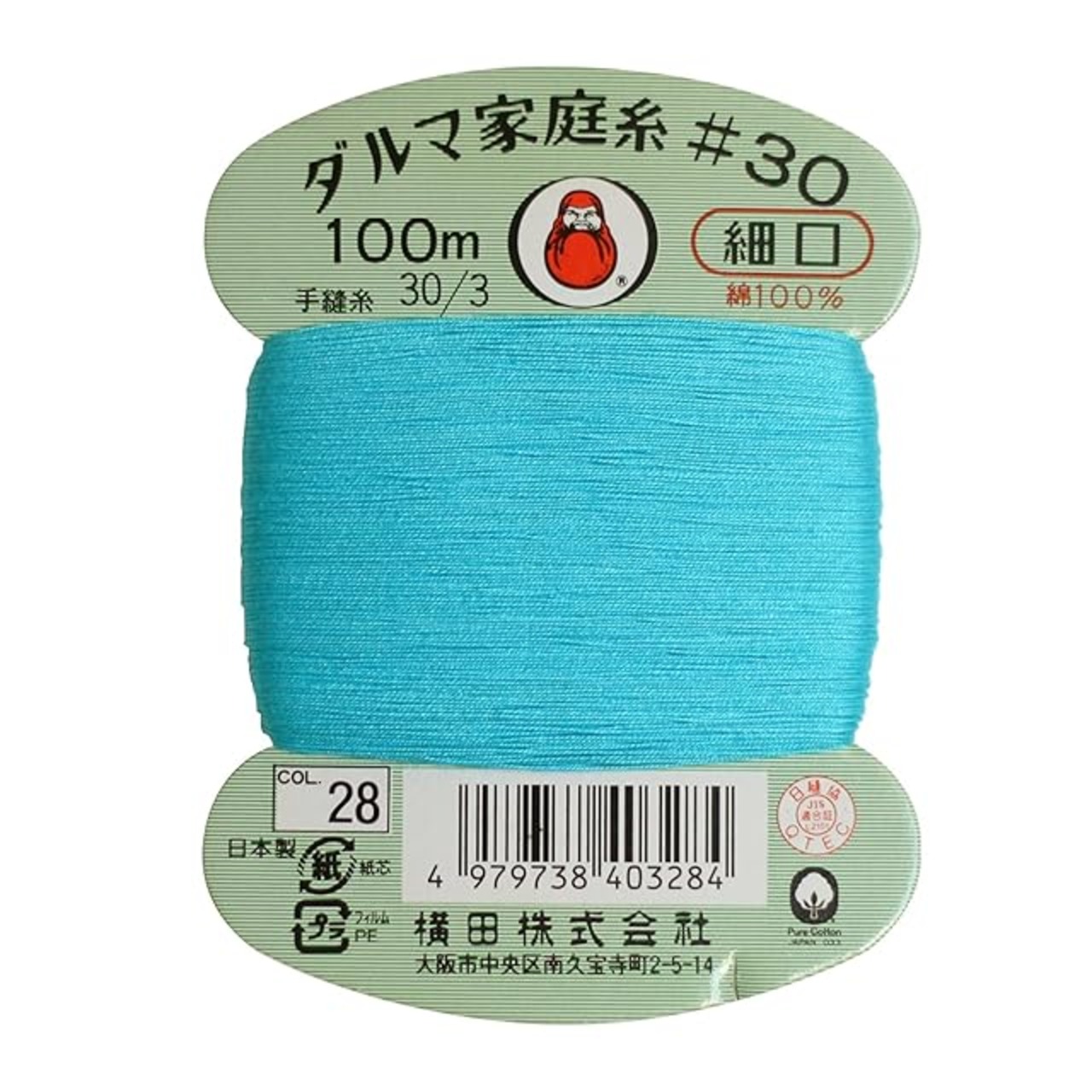 横田 ダルマ 家庭糸 手縫い糸 30番手 細口 col.28 水色 100m 01-0130