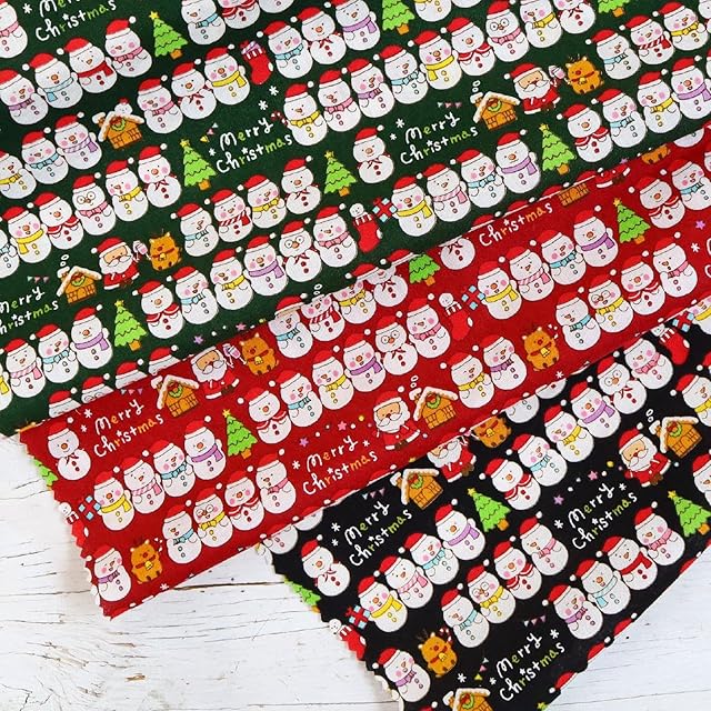 Christmas Collection クリスマスプリント生地 雪だるま柄 巾110cm×1m切売 Aグリーン AP45102-3A