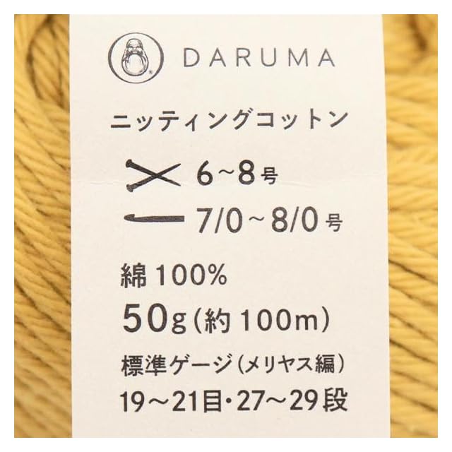 DARUMA 手編み毛糸 ニッティングコットン 並太 COL. 13 ハニーマスタード 約 50g 100m 3100