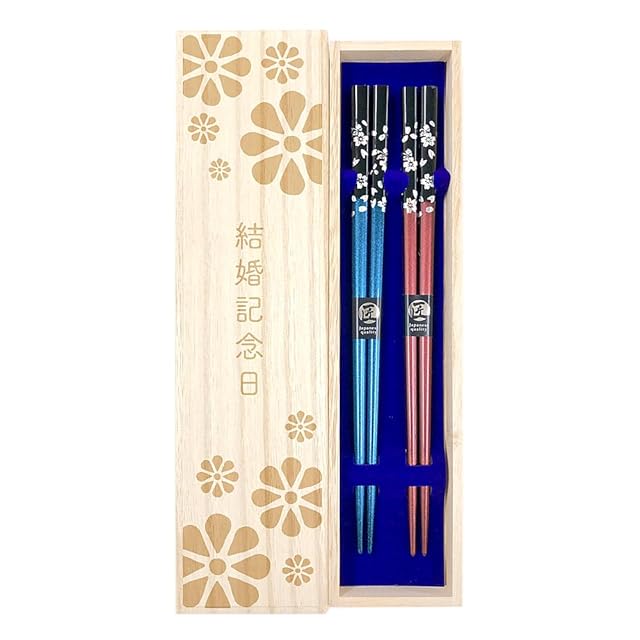 夫婦箸 銀桜花 青 赤 デザイン桐箱・ラッピング付き 結婚記念日 両親 お父さん お母さんおとうさん おかあさん おじいちゃん おばあちゃん 祖父 祖母 祖父母 金婚式 銀婚式 木婚式 お祝い プレゼント ギフト ペア セット お揃い 夫 妻 家族 友達 友人 会社 職場 夫婦 ふうふ お箸【177】