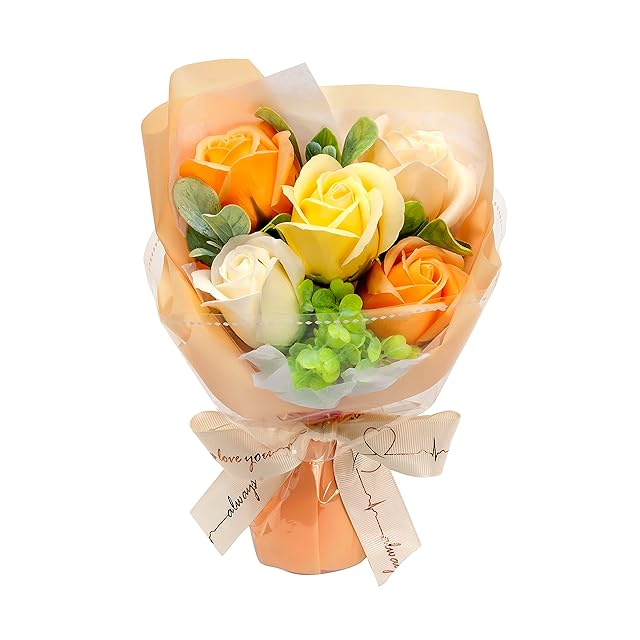 BIO フレグランスソープフラワー モナブーケ 紙袋入 お祝い 記念日 誕生日 発表会 ブライダル パーティー 送別会 プレゼントハロウィン 七五三 いい夫婦の日 お歳暮 クリスマス (オレンジ)