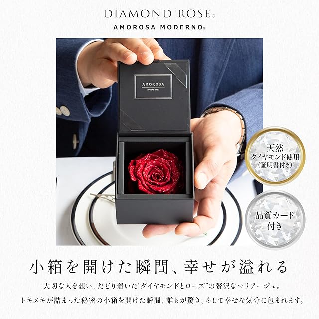 【天然ダイヤモンドとバラ 】 2つの憧れとトキメキが詰まった箱のフタを開けた瞬間、誰もが驚き幸せな気分に包まれます。
