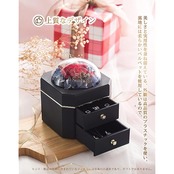材質と仕様: 花:ブリザードフラワー 、透明カバー素材:アクリル、内装材:かいベルベット 長さ11.5CM幅11.5CM高さ13CM。重量:約413G。内部のデザインも巧妙で、収納スペースを最大限に実現すると同時に、おしゃれ感を保っている。