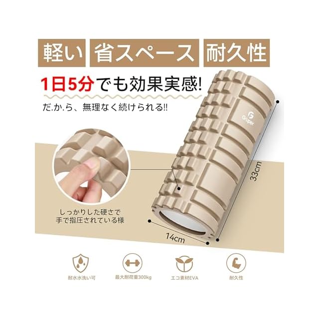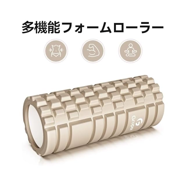 商品名:Gruper フォームローラー 筋膜リリース グリッドフォームローラー ヨガポール トレーニング スポーツ フィットネス ストレッチ器具 収納バッグ 日本語説明書付 (ベージュ)