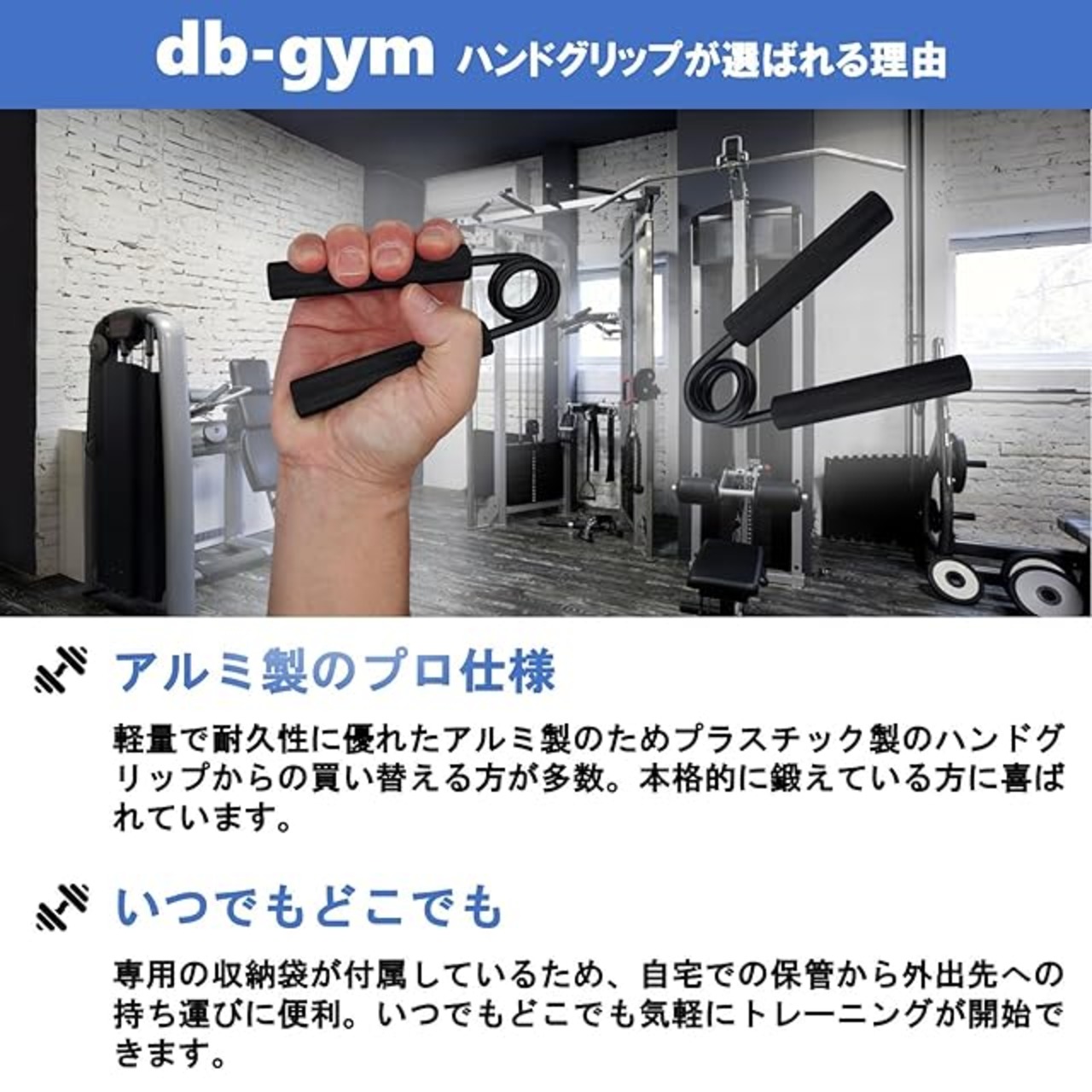商品名:db-gym ハンドグリップ パワーグリップ ブラック 手軽に鍛える 負荷が選べる 場所を取らない 握力強化 筋トレ器具 収納袋付き 2種セット(BK 100lbs 150lbs))