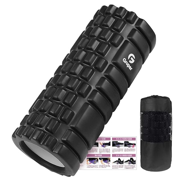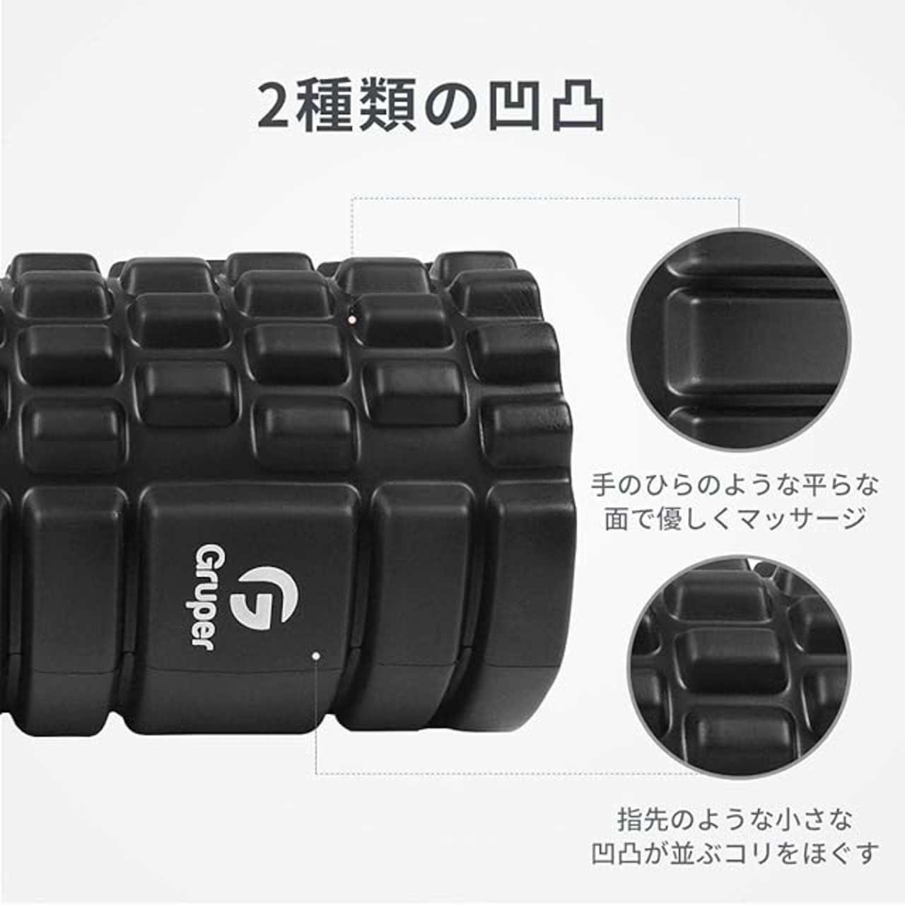 商品名:Gruper フォームローラー 筋膜リリース グリッドフォームローラー ヨガポール トレーニング スポーツ フィットネス ストレッチ器具 収納バッグ 日本語説明書付 (黒)