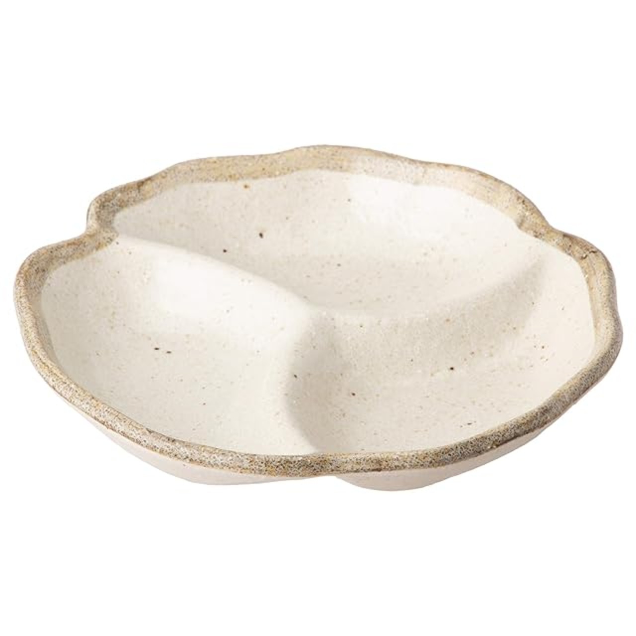 商品名:美濃焼 白唐津 3仕切り皿 オードブル皿 約18×3cm 小分け皿 区切り お皿 焼肉皿 電子レンジ対応 食洗機対応 日本製 K80032
