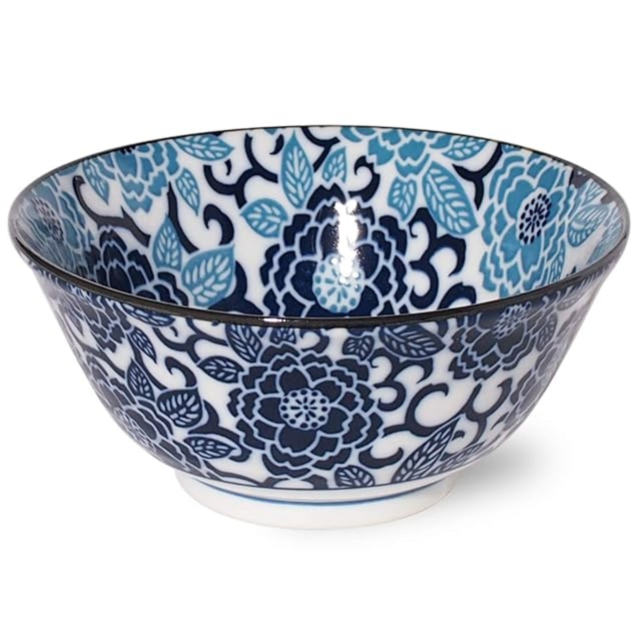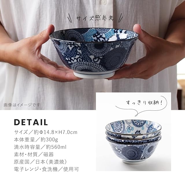 みのる陶器(Minorutouki) 丼 紺青 冬牡丹 直径14.9cm 多用丼
