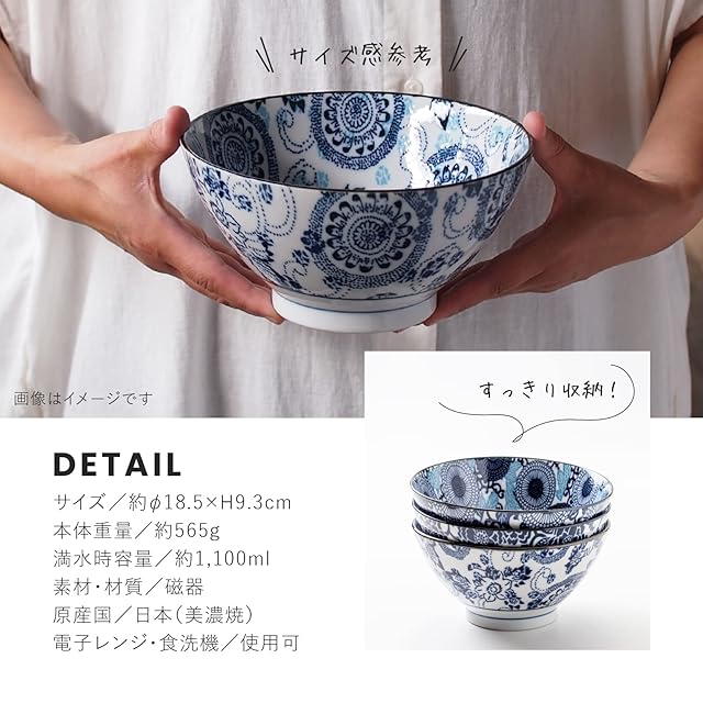 商品名:みのる陶器 丼 紺青 風車 反型60丼 4965583743439