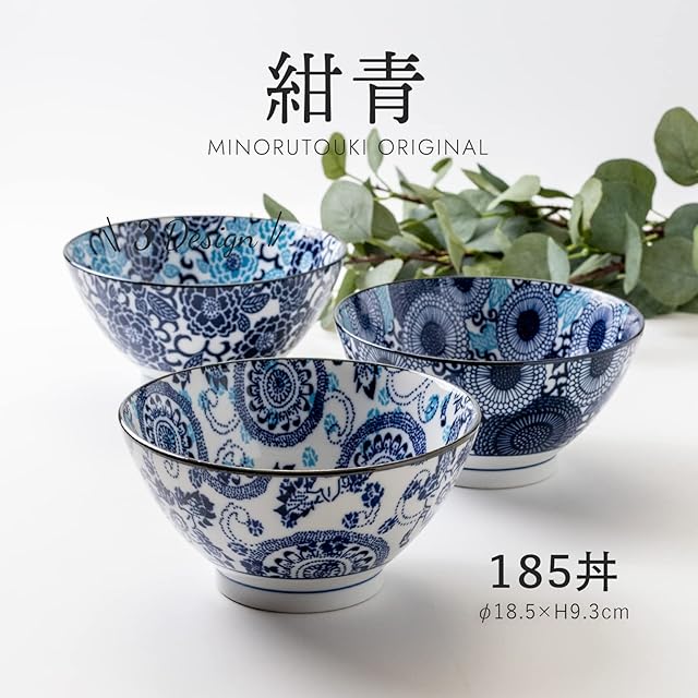 みのる陶器 丼 紺青 風車 反型60丼 4965583743439