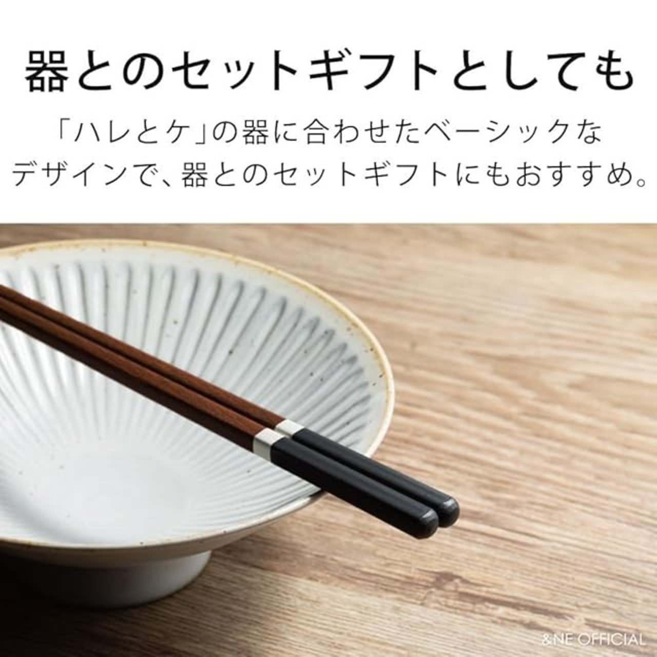 細身で箸先は滑り止め付きです。抗菌加工・食洗機対応なのもうれしいポイント。「ハレとケ」の器に合わせたベーシックなデザインで、器とのセットギフトにおすすめです。