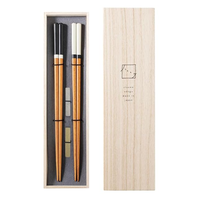 商品名:アンドエヌイー(&NE) 若狭塗り箸 燕三条箸置き 2膳セット 木箱入り ハレとケ 黒 白 金 銀 22.5cm 4cm×0.7cm×0.7cm ペア箸&箸置きセット 日本製 木製 真鍮 ステンレス 縁起が良い 使いやすい 男女兼用 大人用 NOS-297-386-KG