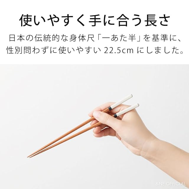 商品名:アンドエヌイー(&NE) 若狭塗り 箸 ハレとケ 白 22.5cm お箸 日本製 木製 食洗機対応 滑り止め付き 天然木 掴みやすい 持ちやすい 男女兼用 大人用 NOG-297-WH