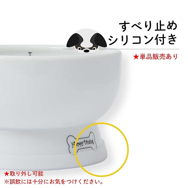 【猫用食器でおなじみのハッピーダイニング食器が犬用で登場】 猫用の脚付ウォーターボウルで人気のある猫壱のハッピーダイニングシリーズに待望の犬用脚付ウォーターボウルが登場。脚付で高さがある器なので、犬が自然な姿勢でお水を飲むことができます。犬の体格や使用用途に合わせて2サイズお選びいただけます。レギュラーサイズは、子犬~小型犬におすすめです。 磁器製なのでお水がまろやかに。またお湯やスープを入れた場合冷めにくいという嬉しい特長も。
