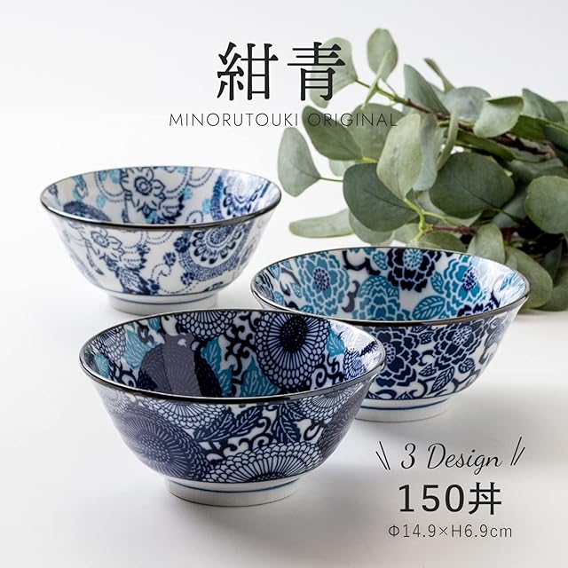 みのる陶器(Minorutouki) 丼 紺青 風車 直径14.9cm 多用丼