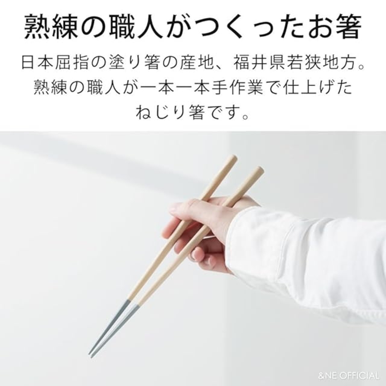 日本屈指の塗り箸の産地、福井県若狭地方。熟練の職人が一本一本手作業で仕上げた、ねじり箸です。