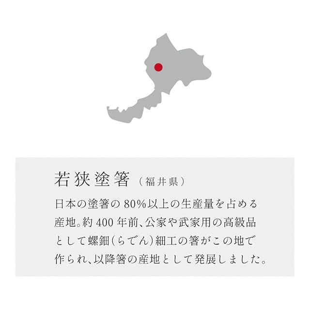 日本一の生産量を誇る塗り箸の産地、福井県若狭地方で作られた細身の上品な塗り箸です。