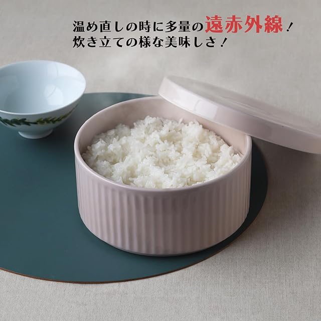 【美味しさKEEP】ご飯の水分を保ち、レンジ加熱時には多量の遠赤外線が放射され炊きたての様な味わいになります。