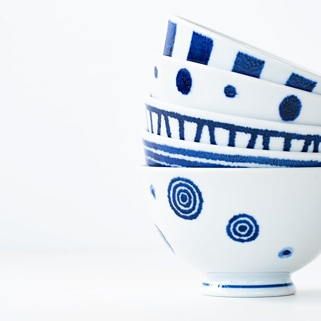 西海陶器 波佐見焼 食器セット お茶碗 5点セット 軽量 飯碗 直径約12cm 藍玉柄 和柄 ご飯茶碗 プレゼント 新生活 北欧 食器 おしゃれ 女性 かわいい 和食器 電子レンジ 食洗機対応 日本製 19863