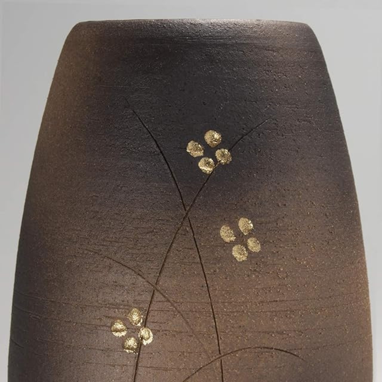 商品名:丸伊製陶 信楽焼 へちもん 花瓶 陶器 大きい フラワーベース 金彩押花 高さ約25cm ギフト プレゼント お祝い 和室 インテリア お供え 生け花 日本製 MR-1-2517